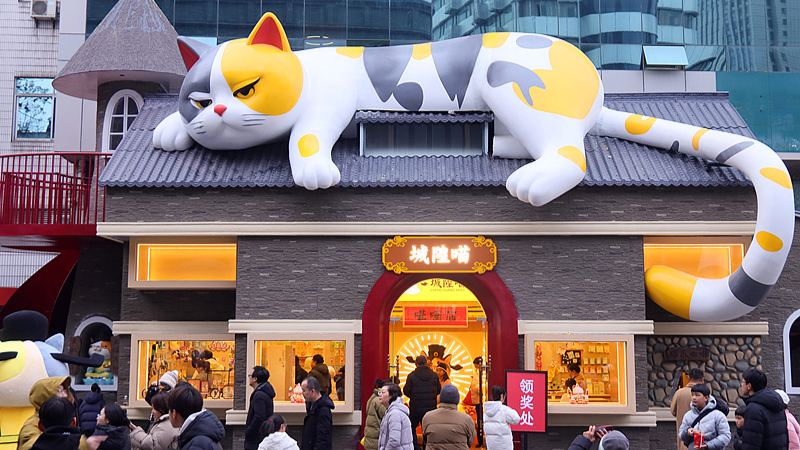 Търговска зона в Чанджоу привлича посетители с гигантски котки