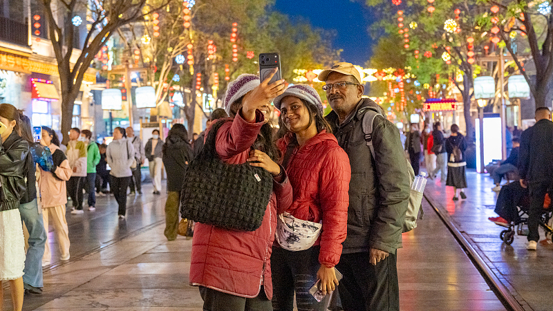 Чуждестранни туристи посещават нощен пазар в Пекин